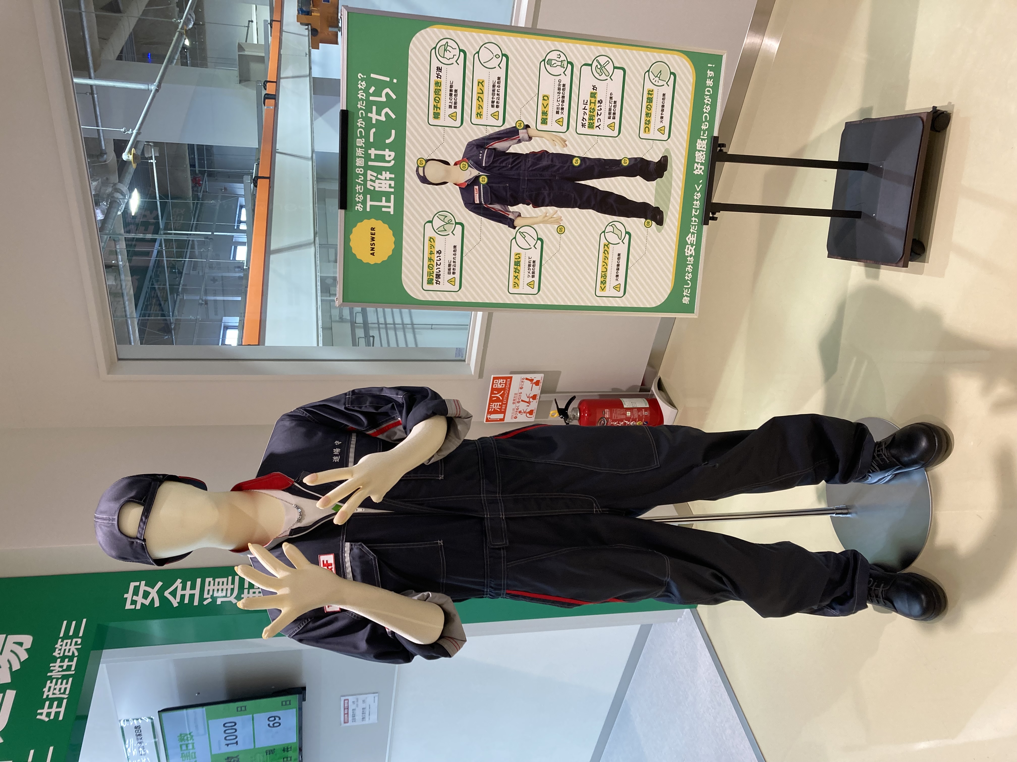 入口に居るこの人形は安全ではない行為をしているのでそれを当てるコーナーです。